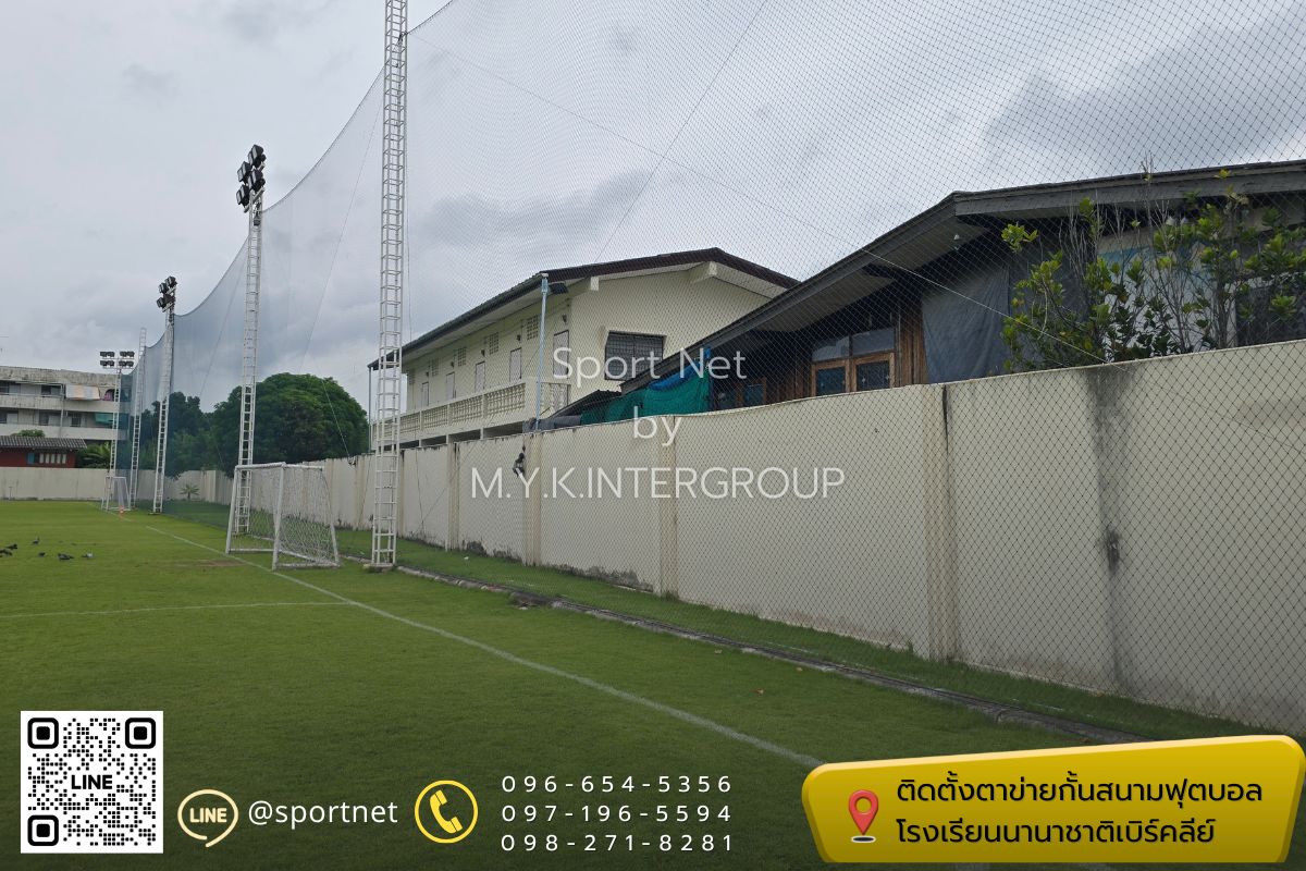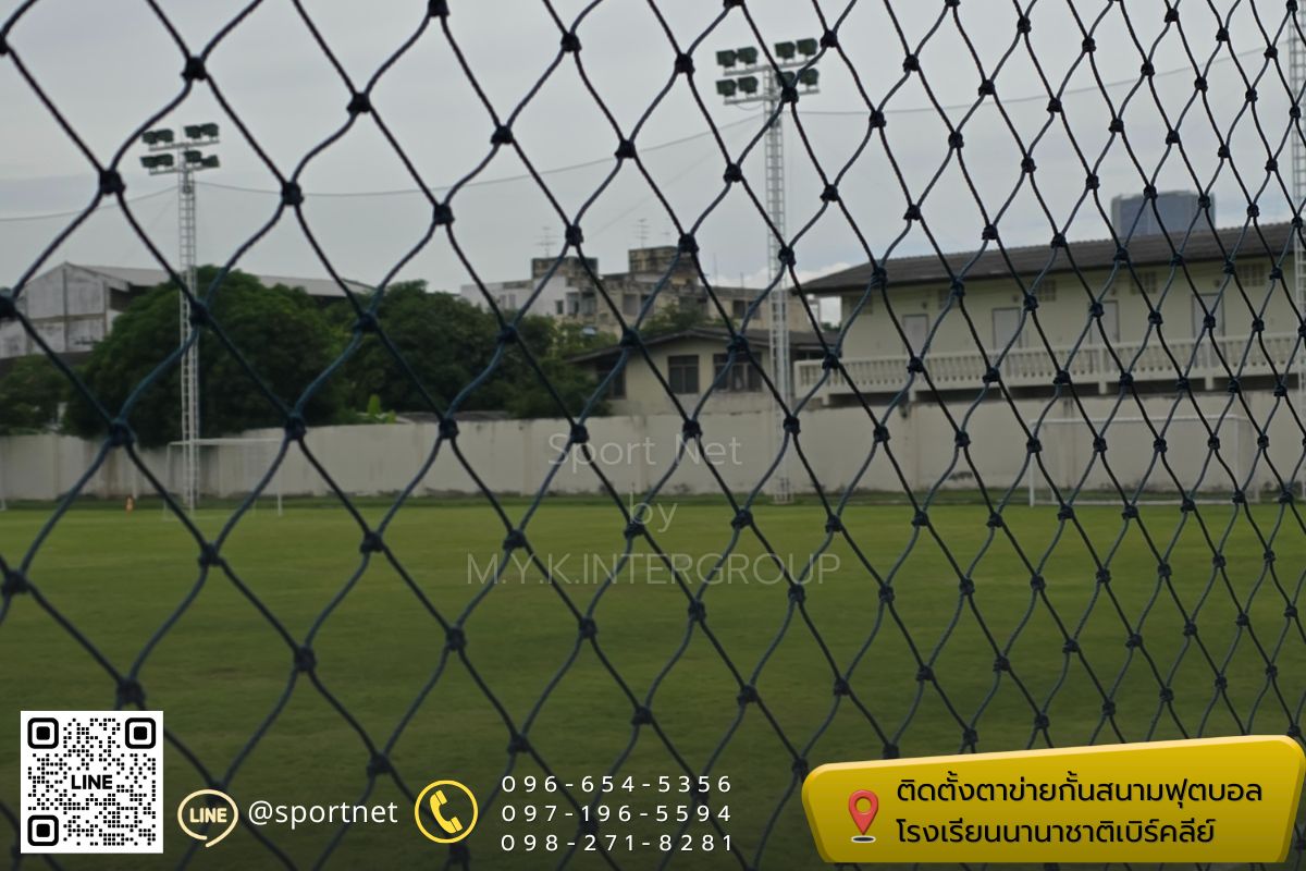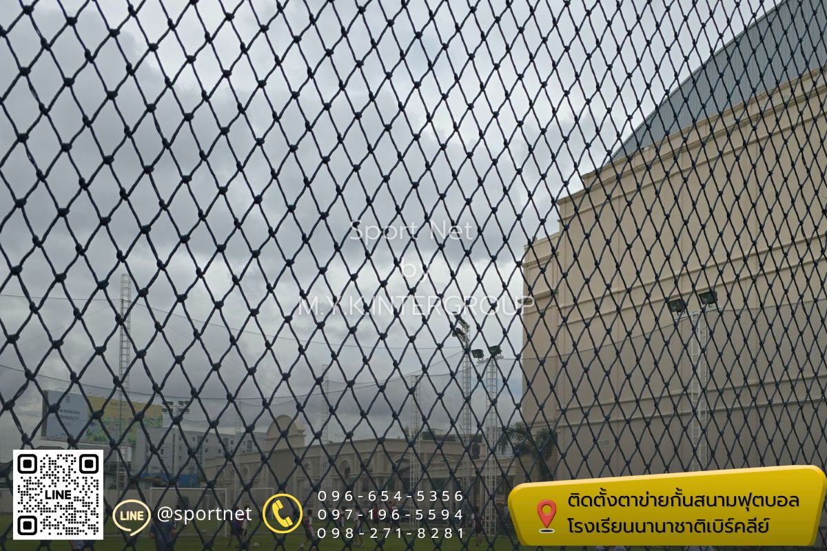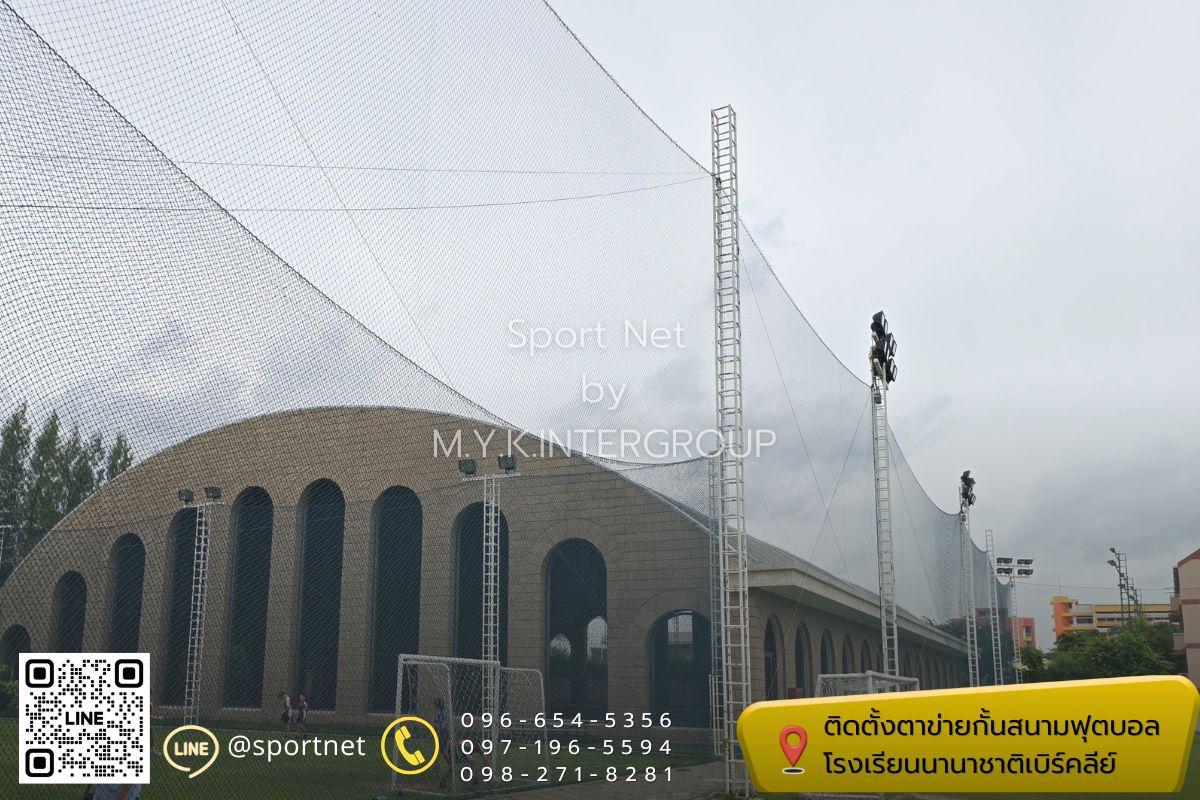 ติดตั้งตาข่ายกั้นสนามฟุตบอลโรงเรียนนานาชาติเบริคลีย์ บางนา โดย ตาข่ายเชือก ชนิด HDPE UV Certificated มีใบรับรอง และ Product specification เกรดA ผสมสารป้องกันรังสียูวี 100% มีใบรับรองคุณภาพ ทนต่อสภาพแวดล้อม แสงแดด และลมแรง